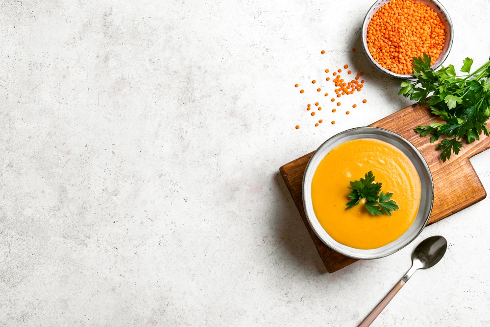 In questa ricetta scopriremo una vellutata calda e avvolgente, perfetta sia per le fredde giornate invernali, che servita a temperatura ambiente, per quelle più calde: la vellutata di zucca e lenticchie con crostini di pane. Questo piatto ricco di sapori è una combinazione unica di zucca che farà da base con la sua dolcezza, lenticchie che daranno il corpo e il nutrimento alla vellutata e i crostini di pane croccanti, per dare texture e stuzzicare l’appetito, creando un'esperienza gustativa che soddisferà cuore e palato.
